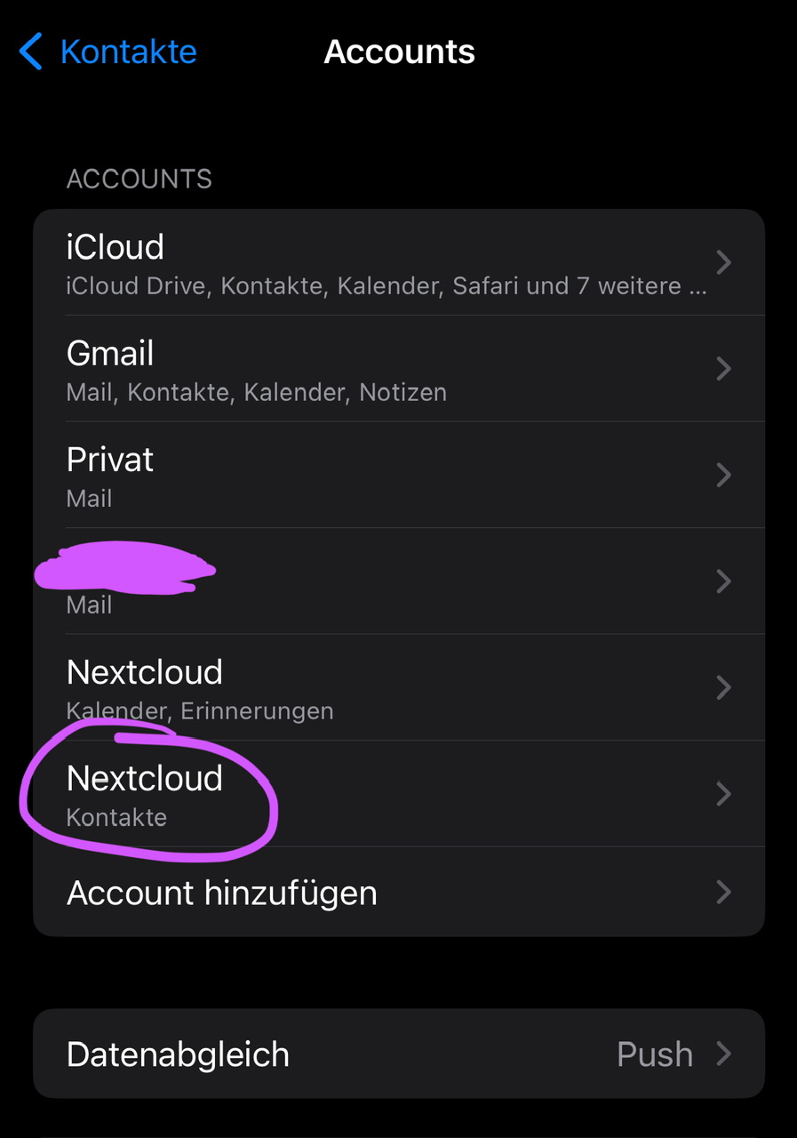 Ich würde gerne meine Kontakte von der iCloud auf meine Nextcloud umziehen. Kalender, Erinnerungen etc. funktionieren problemlos darüber, aber Kontakte kann ich nicht per Default in der Nextcloud ablegen. Die Option fehlt einfach zur Auswahl.