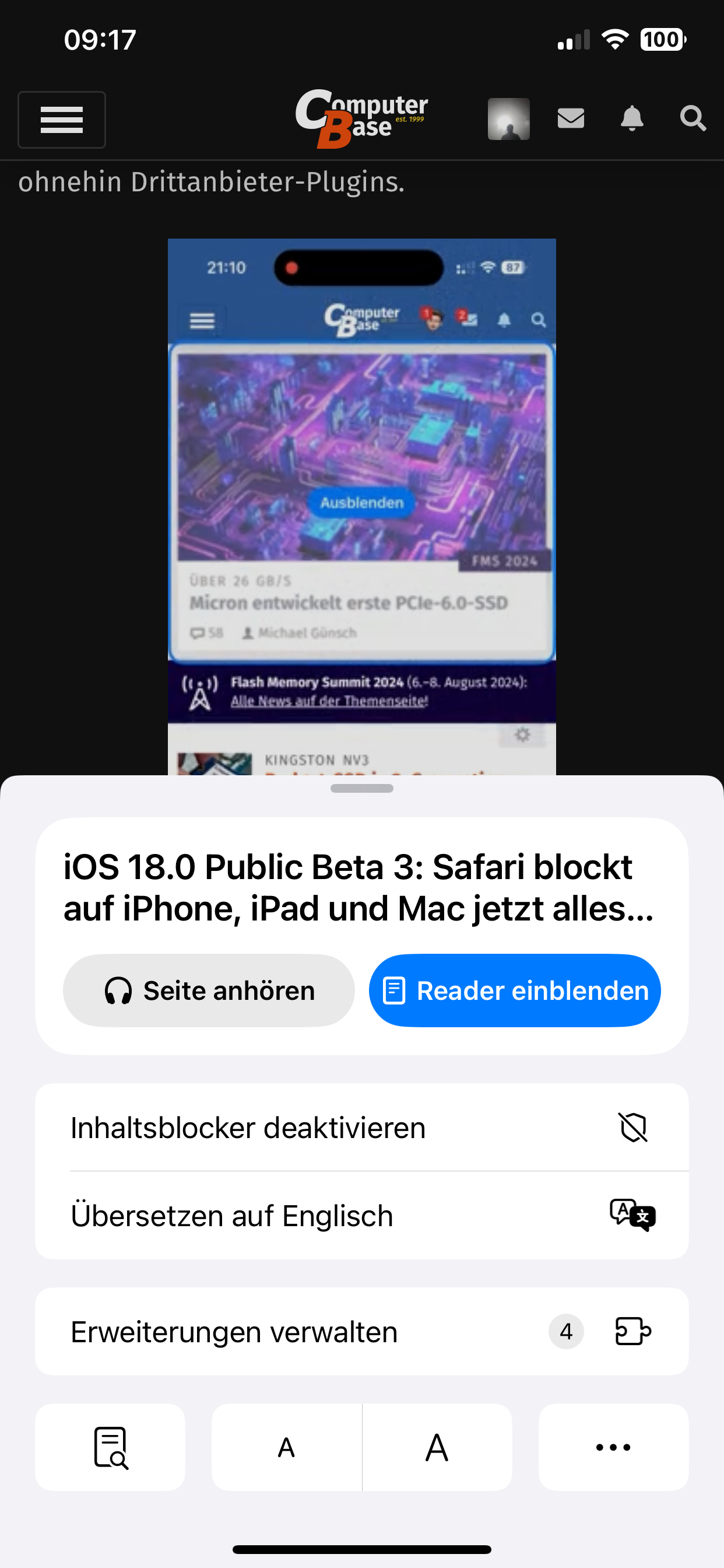 sämtliche Werbung ?...blockt Safari mit der Ablenkungskontrolle Elemente auf Webseiten