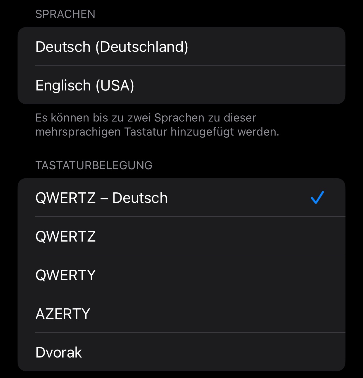 Nun zu meiner Frage, wie kann ich die Tastatur auf das "Umlaute"-Layout wechseln? In IOS 17 war unten links eine Art Kugel wo man zwischen Umlaute Layout und ohne Umlaute Layout wechseln konnte. Das fehlt jetzt.