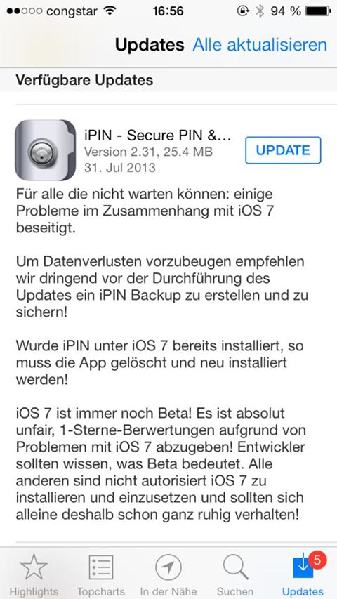 Wenn hier Fehler gepostet werden sollte es aber nicht um die Apps gehen wie XYZ läuft nicht, ist ja auch kein Wunder da noch keine App an iOS 7 angepasst wurde.