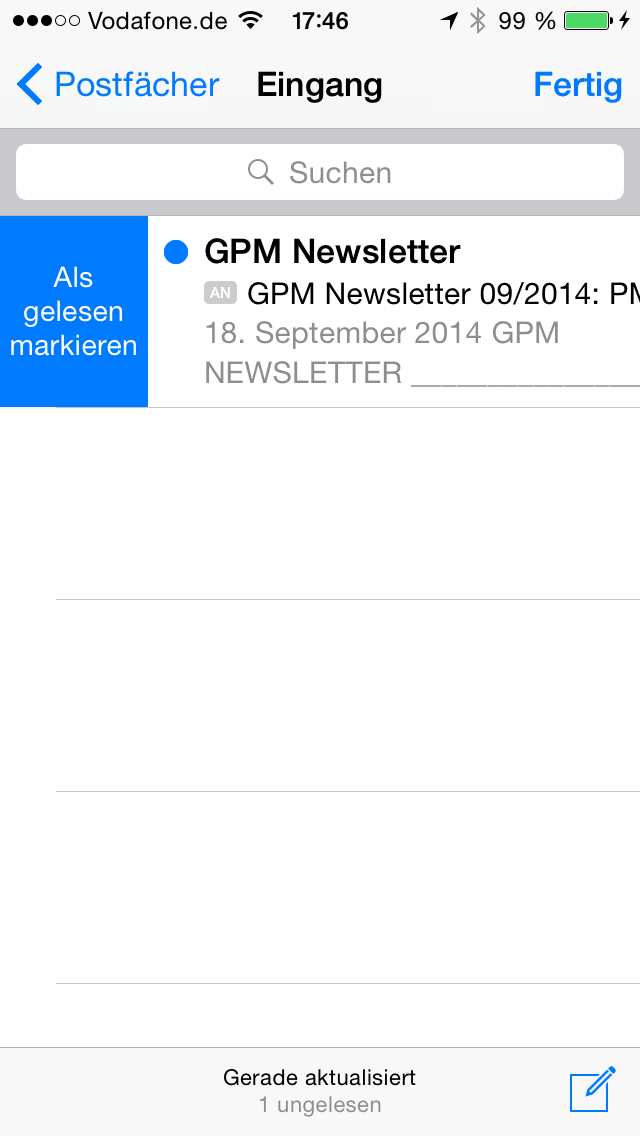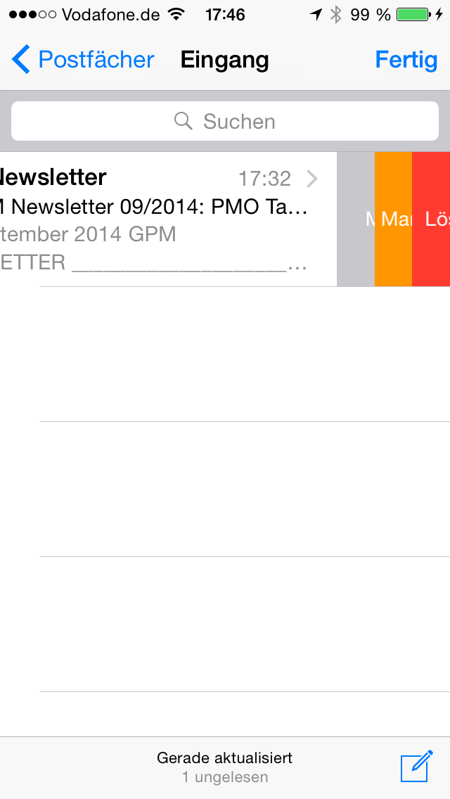 Vorher konnte das so nicht passieren. Jetzt kann es passieren, dass man in der Postfachübersicht zu schnell zur Seite wischt oder so, und schon sind E-Mails weg. So etwas darf eigentlich nicht sein. Ich frage mich wirklich ob die Leute die sich das ausgedacht haben, das auch mal ausprobiert haben.