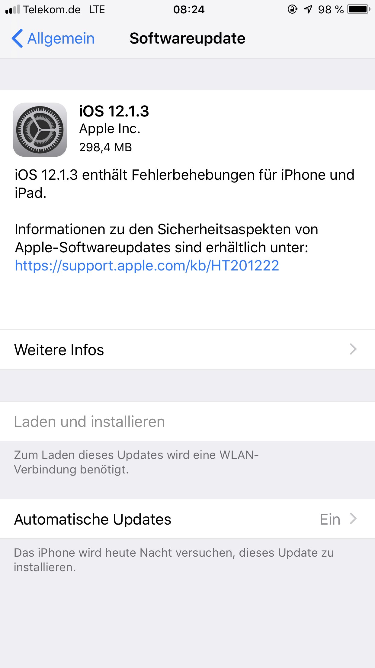 Flickschusterei. 12.1.3 Also das Dritte microupdate des ersten Unterupdates von IOS12. Einmal vernünftig würde durchaus reichen. Aber dann gäbe es ja nicht die Jubelschreie über die tolle Updatepolitik