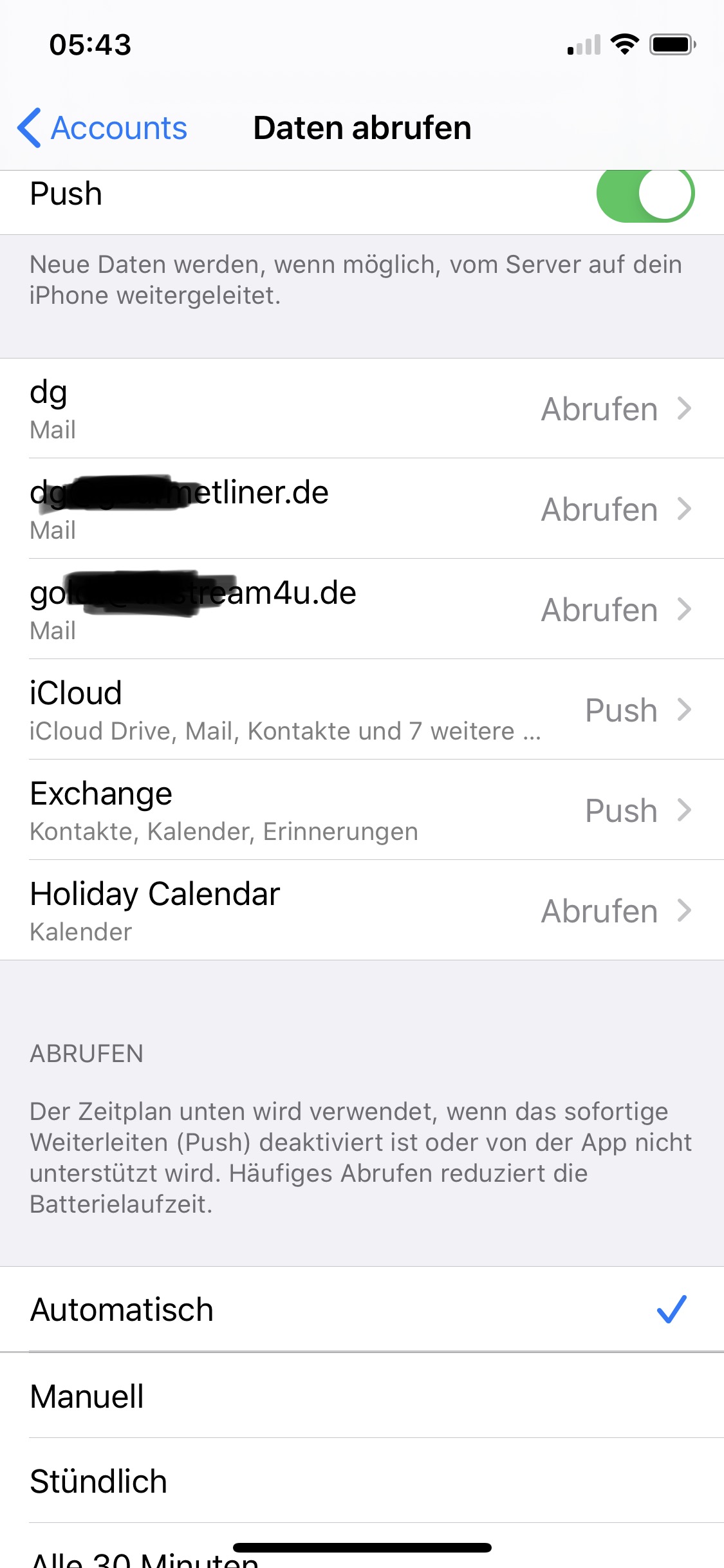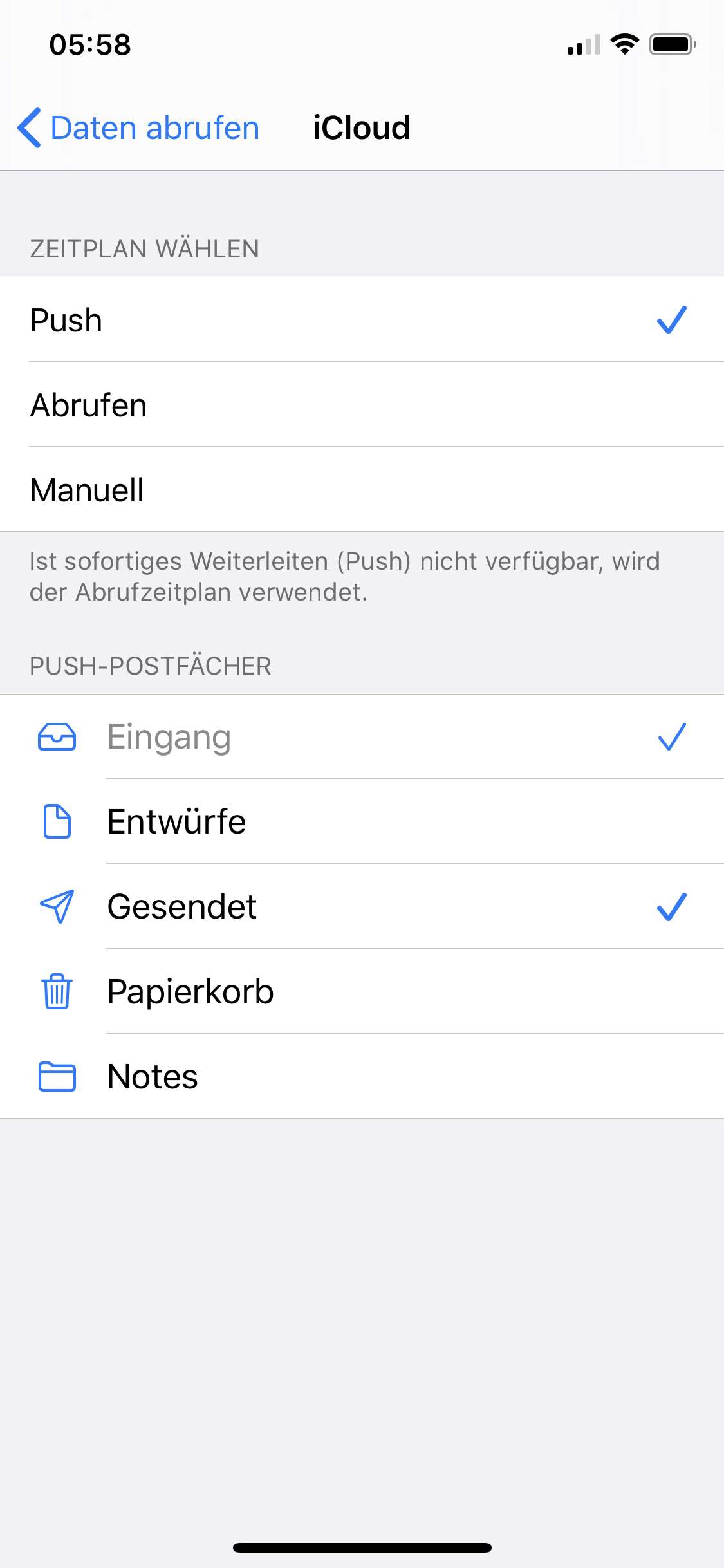 Einstellungen - Passwörter & Accounts - Datenabgleich