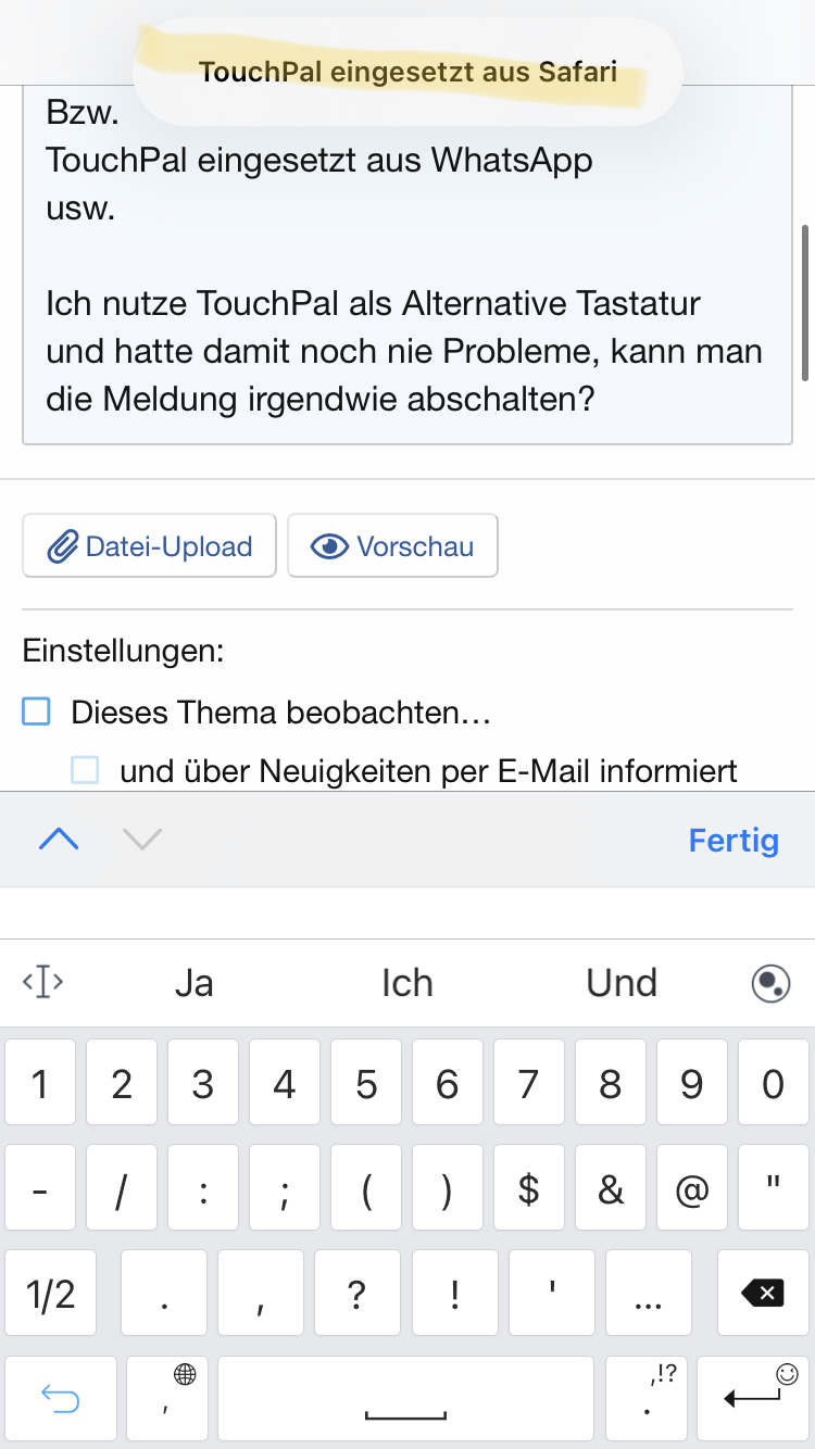 Ich nutze TouchPal als Alternative Tastatur und hatte damit noch nie Probleme, kann man die Meldung irgendwie abschalten?