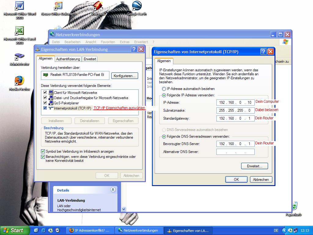Hallo habe den Sinus 154 Router und hatte bisher auch keine Probleme damit. Gestern hab ich mein System neu installiert und heute- nachem der Rechner 12h ohne Probleme gelaufen ist- bekomme ich die Meldung : " IP Adressenkonflikt......." Danach habe ich keine Verbindung zum Inet mehr. Wenn ich den Router neusarte kann ich dann wieder auf unbestimmte Zeit online gehen bis die Meldung wieder kommt. Die IPs werden von meinem Router eigentlich automatisch vergeben und im moment ist auch nur ein Rechner angeschlossen deswegen ist diese Meldung wirklich komisch. Jemand eine Idee?