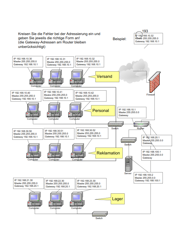 - Lager: Maske auf 255.255.0.0 ändern / IP-Adresse ?