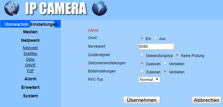 Das Menü der IP-Cam wird über eine zugewiesene IP meines Routers erreicht: 192.169.x.x und dort habe ich schonmal einen eigenen Namen und ein starkes Passwort gesetzt. WLAN habe ich auch deaktiviert.