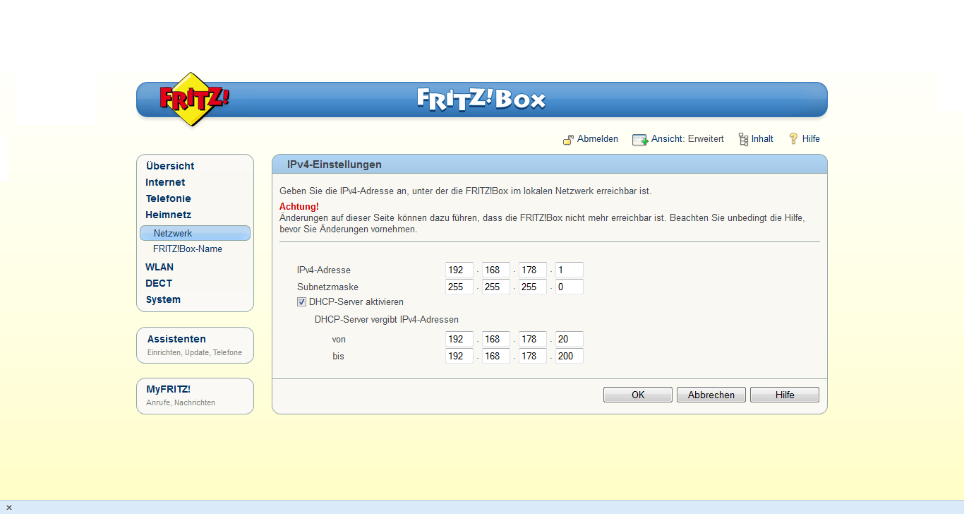 Deine FRITZ!Box verteilt per DHCP IPs im Netz 192.168.