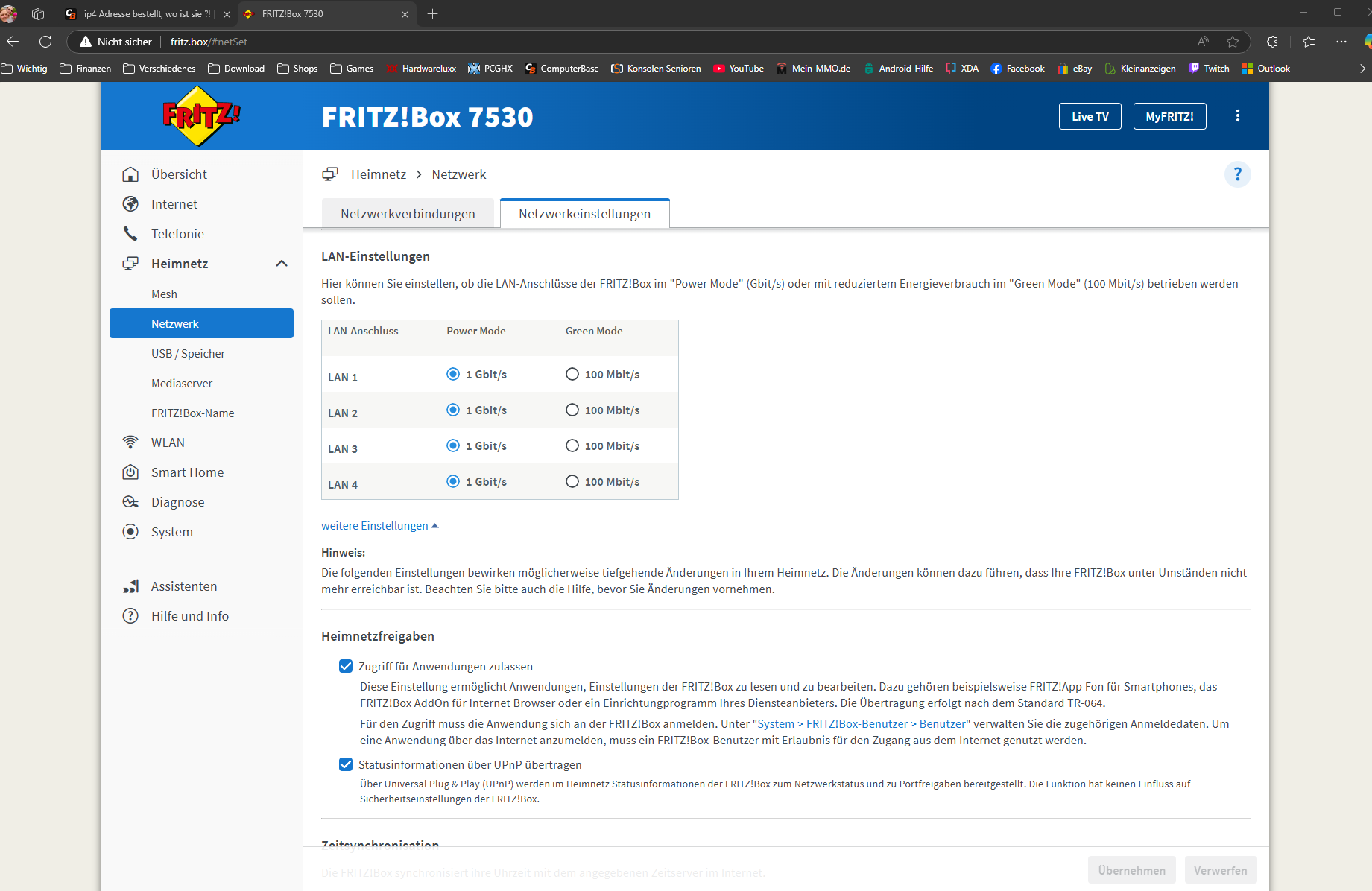 Ich hab keine Fritzbox als Router sondern eine proprietäre Box meiner Providers, da ist relativ viel beschränkt.