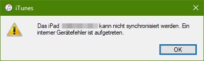 Diesen Fehler erhalte ich beim Synchronisieren des iPads mit Fotos auf meinem Rechner (kein iCloud - keine Alternative für mich). Der Fehler tritt bei Ordnern mit sehr vielen Bildern auf. Auf dem iPhone (7 Plus) hingegen keinerlei Probleme: