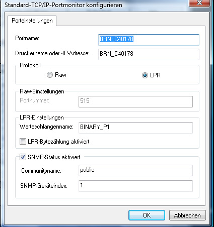 Druckereinstellung im Drucker