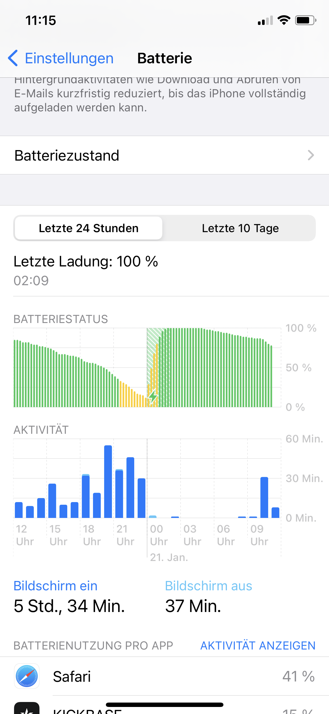 Nach dem Laden 10min Bildschirm an und 15% einfach weg.