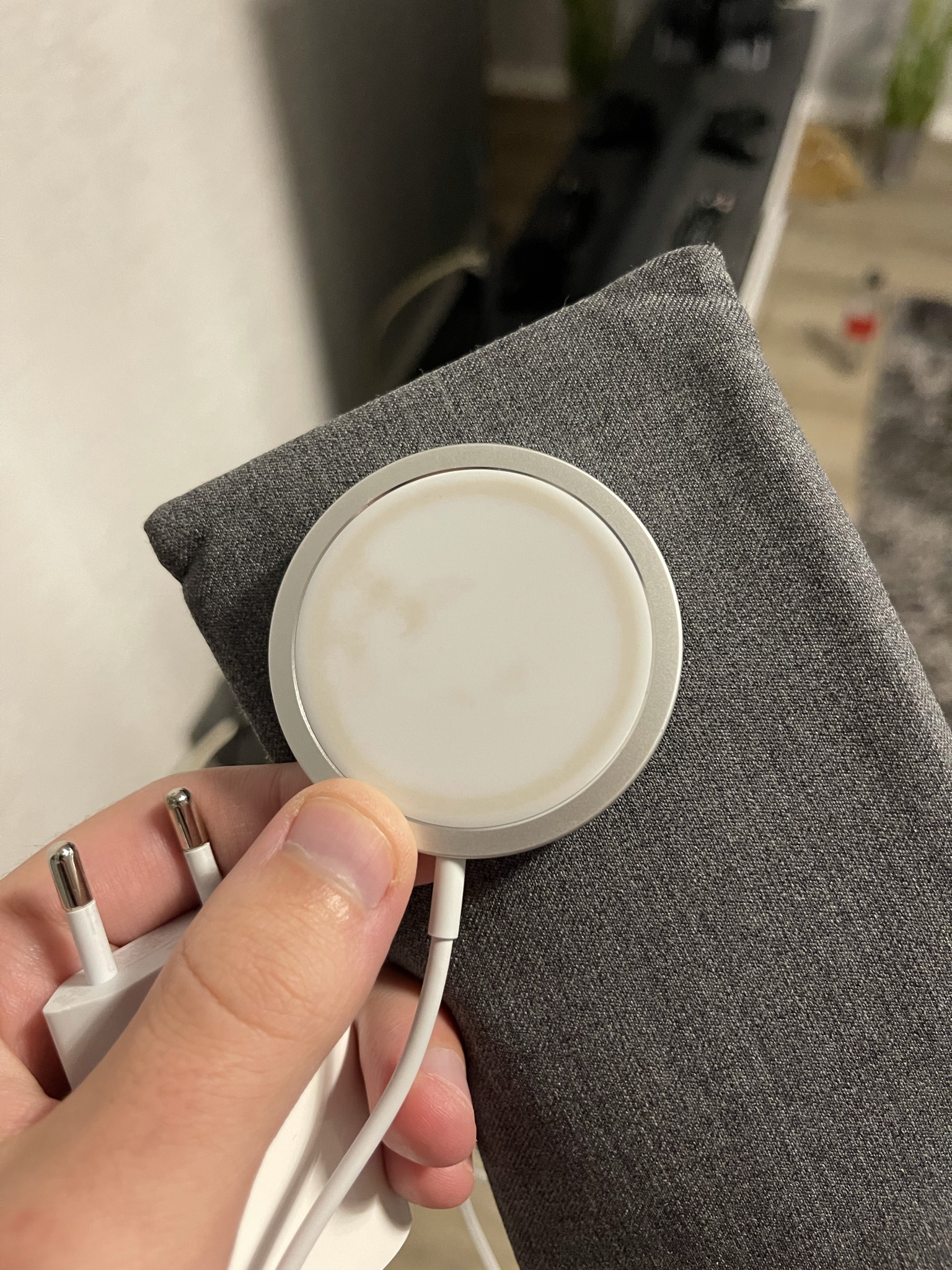 Bei mir haben sich bereits nach wenigen Ladezyklen Verschmutzungen gebildet, die sich nicht mehr entfernen lassen. Apple hat mir die Charger bereits 2x ersetzt, jedoch brachte das alles nichts. Es reicht 1 Ladezyklus aus, damit sich hässliche Flecken auf der Silikonauflagefläche des Chargers bilden. Dabei reinige ich mein Case immer, bevor ich den Charger dranstecke.