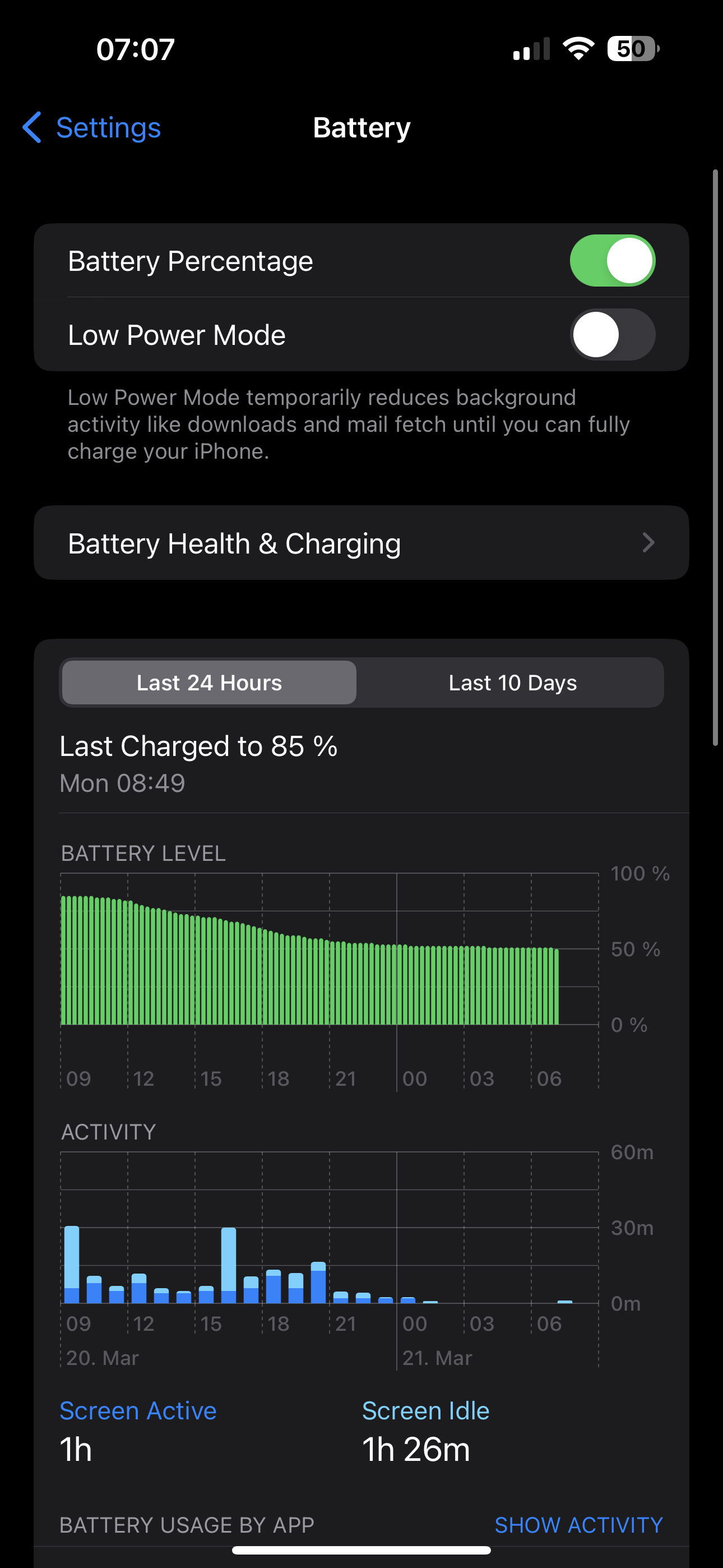 ich habe mir vor ca. 2 Wochen ein Iphone 14 pro max gekauft. Mir ist aufgefallen, dass der Standby Verbrauch ziemlich hoch ist. Vor allem ist dieser hoch, wenn der Akku so bei 50% in den Standby geschickt wurde. Beispiel: ich hatte vor dem schlafen gehen 49% und heute morgen noch 40%. Wenn ich jetzt vor dem schlafen gehen 95% hatte, hatte ich die heute morgen immernoch. Desweiteren ist mir aufgefallen, dass die Akkuanzeige ganz anders ist, wenn ich mein Iphone neustarte. Ich hatte vor dem neustart 40% und danach meist 36% (innerhalb von Sekunden?!!). Ich habe heute morgen einen Chat mit einer Applemitarbeiterin gehabt, welche meinte, dass der Akku sich erst einmal an mein Nutzungsverhalten anpassen müsse. Was ist an dieser Aussage dran? Kann ich da wirklich auf eine Verbesserung hoffen und habt ihr Vergleichswerte, wie bei euch der Verbrauch aussieht? Die Mitarbeiterin machte auch noch einen Diagnosetest, welche natürlich unauffällig war. Ich habe diverse Hintergrundaktualisierungen deaktiviert. Könnt ihr mir da helfen? Ich weiß, 90% macht sich da keine Gedanken, ich aber schon und für den Preis muss das auch hinhauen. Besten Dank für euer Feedback.