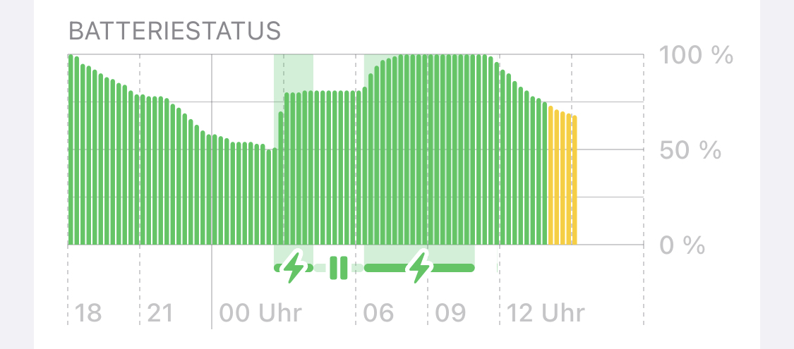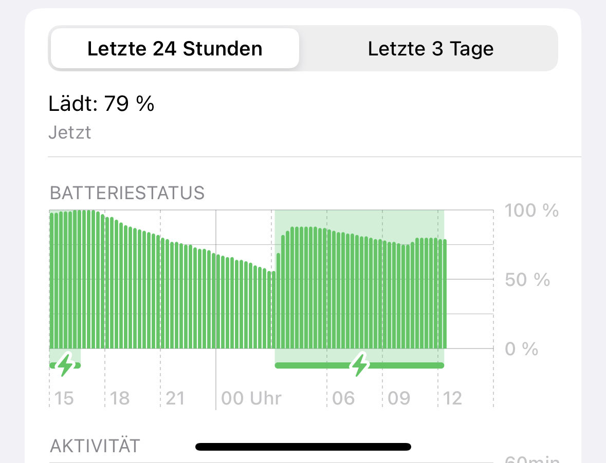 habe es freitag nacht mit 20% zum laden angesteckt und Samstag morgen war es dann nichtmal bei 70%