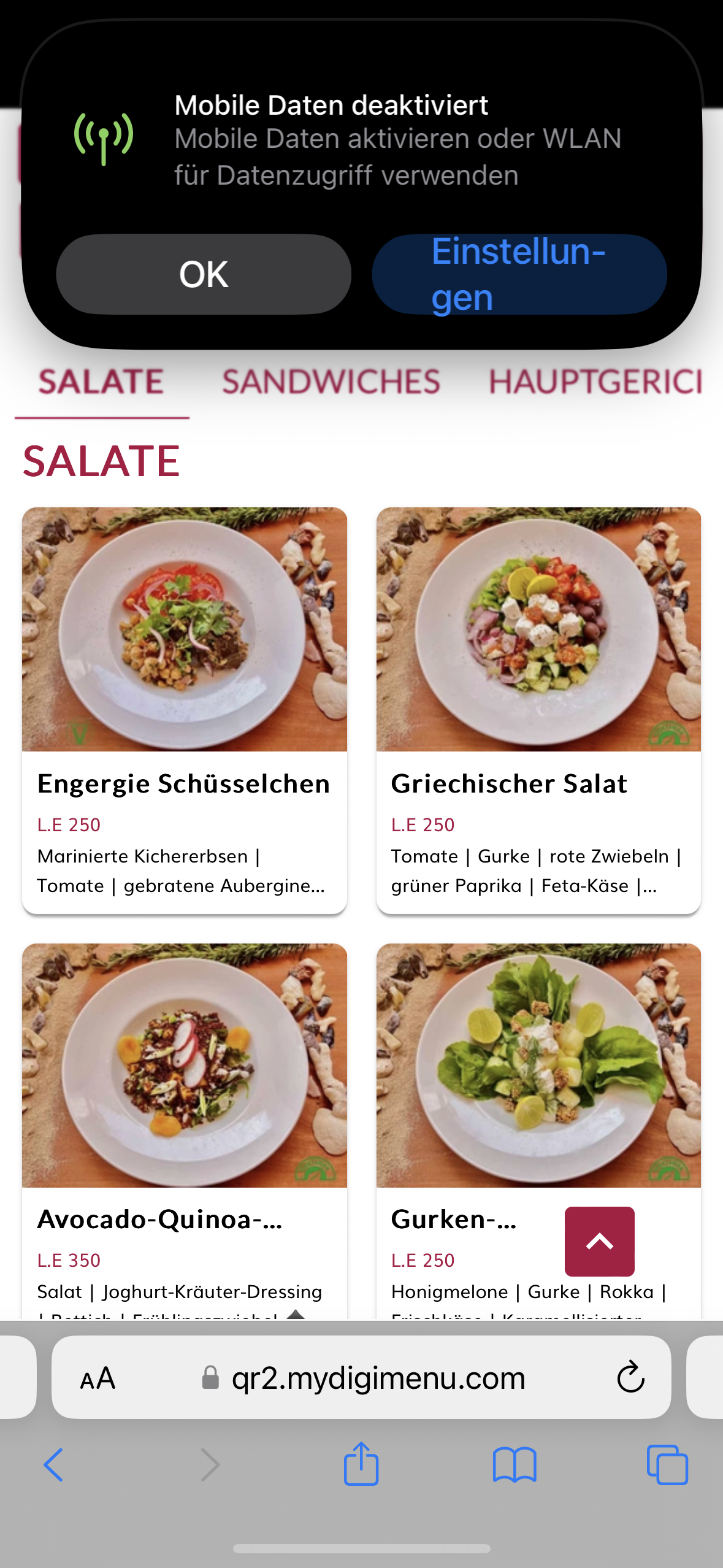 Das Pop-Up sagt Dir entweder du schaltest deine Mobilen Daten ein (Roaming) oder aber du verbindest dich mit einem WLAN-Netz.