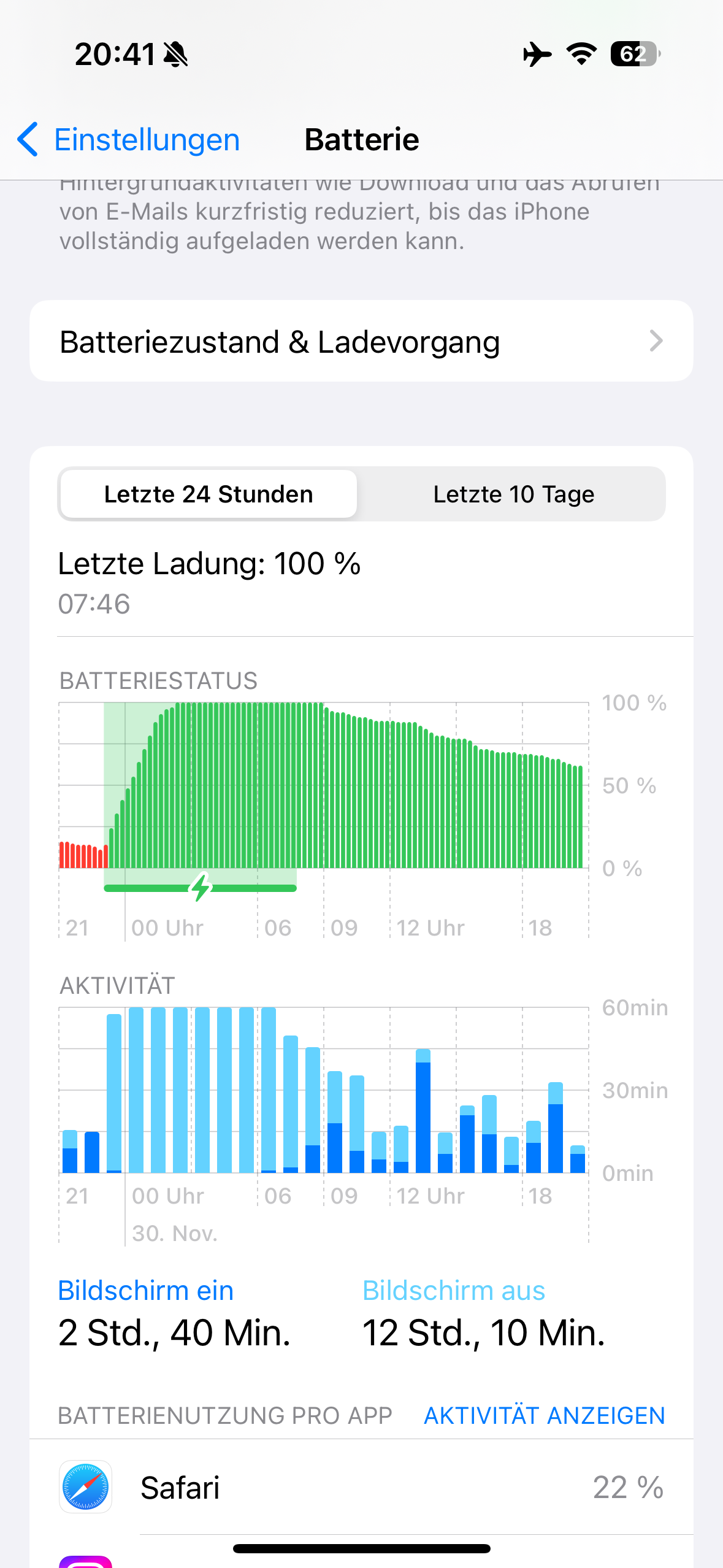 Noch dazu MUSS das verwendete Netzteil + Ladekabel (USB A auf USB C oder nur USB C!) für diese "Optimierten Laden" Funktion völlig unerheblich sein!