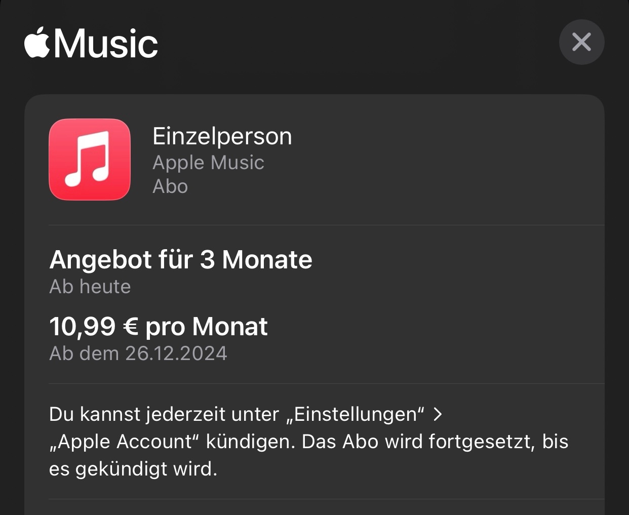 Damit hab ich neben den 1 Monat Apple One nun auch 3 Monate Apple TV+ und Apple Music