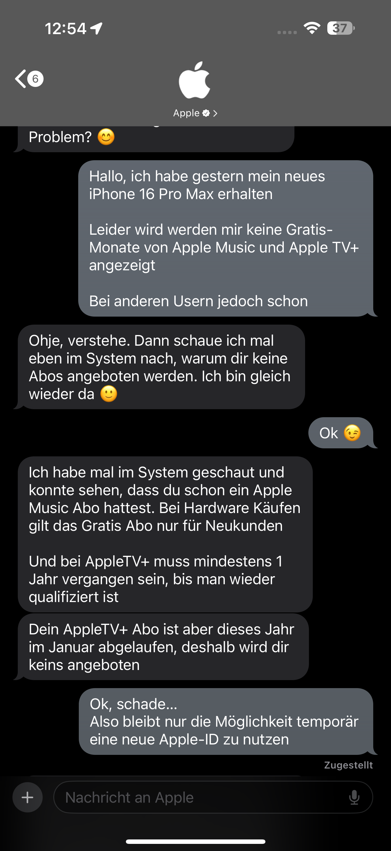 Aber ich von anderen Usern erfahren hab, hat das bei denen auch mit der alten Apple-ID geklappt