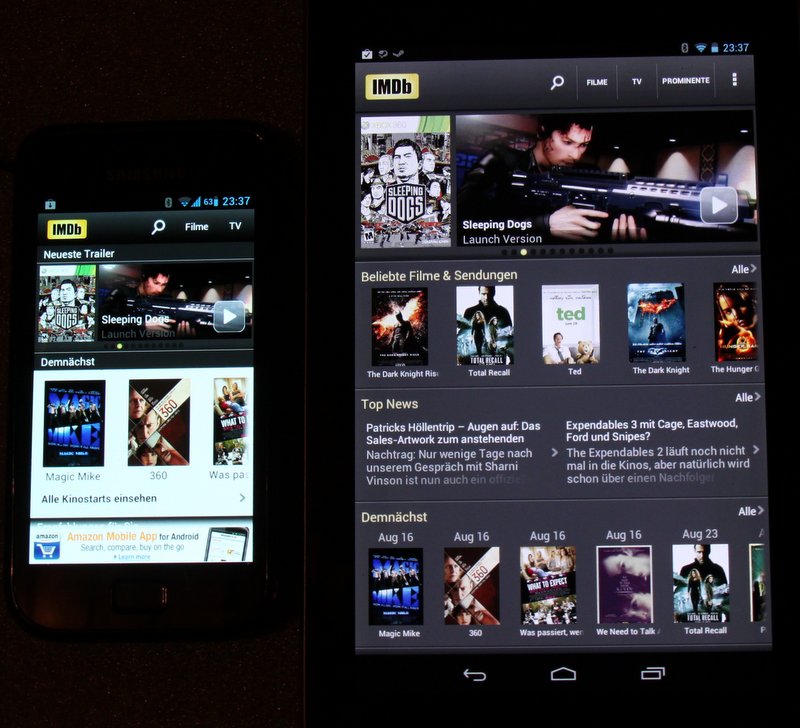 Bei IMDB sieht man, dass sich die Version auf dem Tablet deutlich unterscheidet und die App eben auch richtig für Tablets optimiert ist.