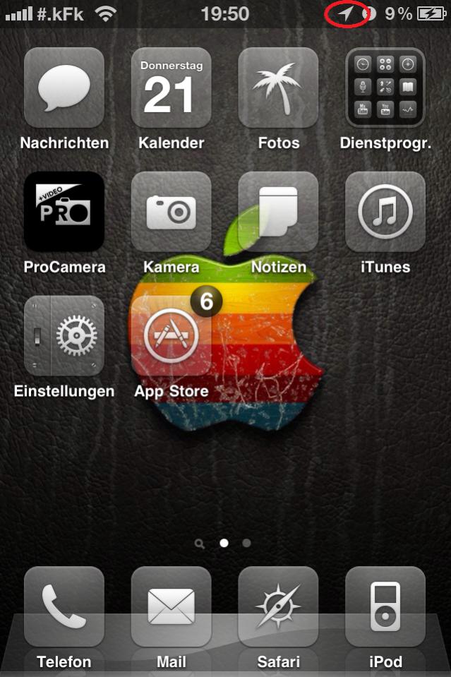 Nun wird dieses Symbol in der Statusleiste allerdings immer angezeigt, auch wenn gar keine app auf den Standort zugreift.