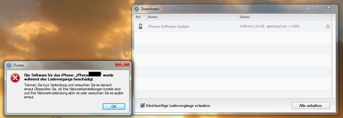 Ich habe Google nur kurz überflogen, aber anscheinend bezieht sich der Code 1403 auf einen Fehler beim Download der Datei.