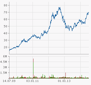 aber wenn ich deren eigenem Chart glauben schenken soll, dann war die in den letzten 5Jahren nie über 100 €?.!
