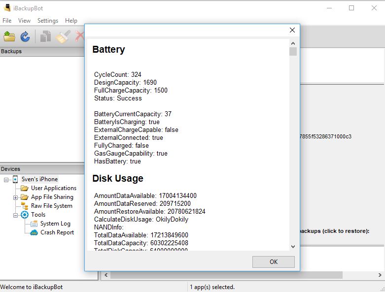 Ich habe mein iphone mit dem Windows Programm iBackupBot ausgelesen. Es zeigt mir 324 Ladezyklen an und eine Kapazität von 1500 (Original wären 1690). Also doch schon ein Verlust der Akkuleistung. Ich habe das iphone im Mai 2016 gekauft. Auch das Programm Battery Life zeigt mir auf dem iphone die selben Werte an. Ich gehe davon aus, dass es stimmt. ist das schon ein Grund bei Apple wegen einem Akku Tausch anzufragen?