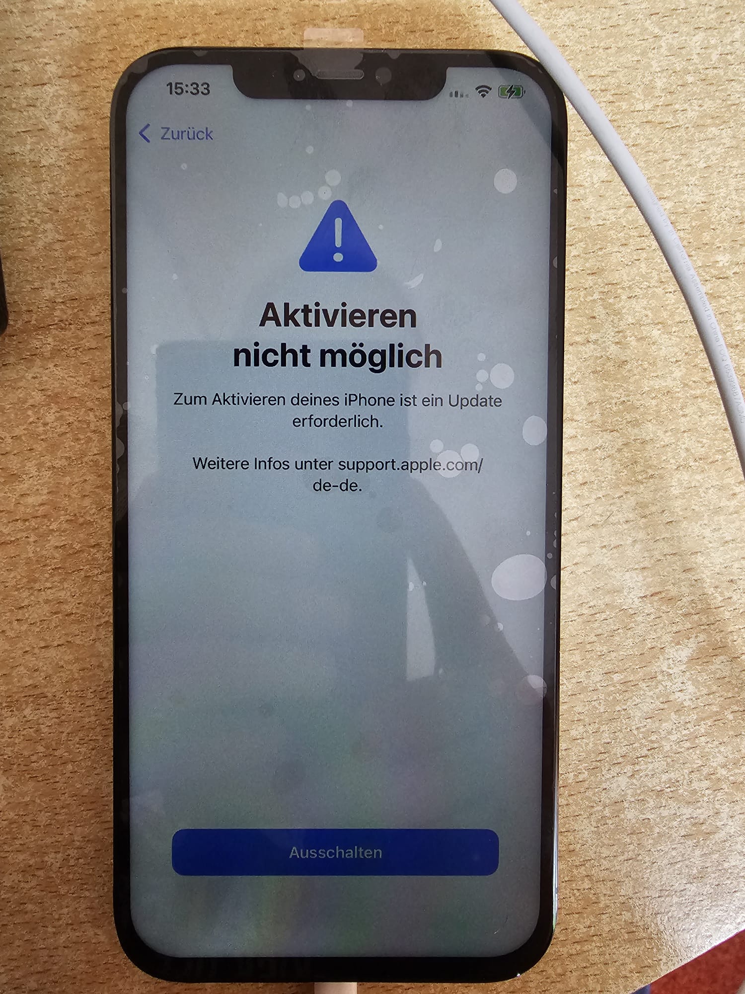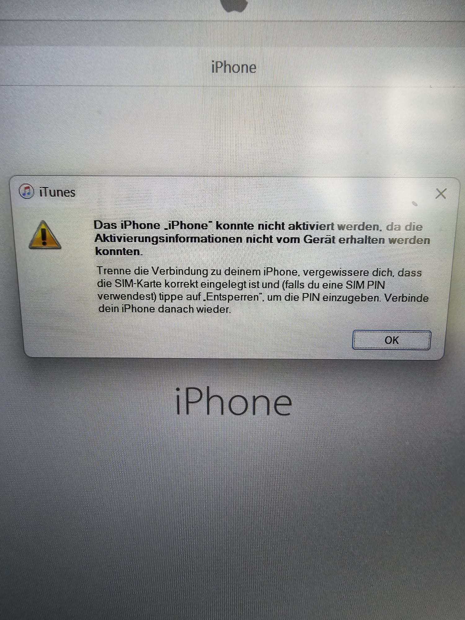 Anbei noch mal ein Foto vom Fehler Bild und vom Verkäufer, wo er es noch hatte und angeschlossen hatte an iTunes.