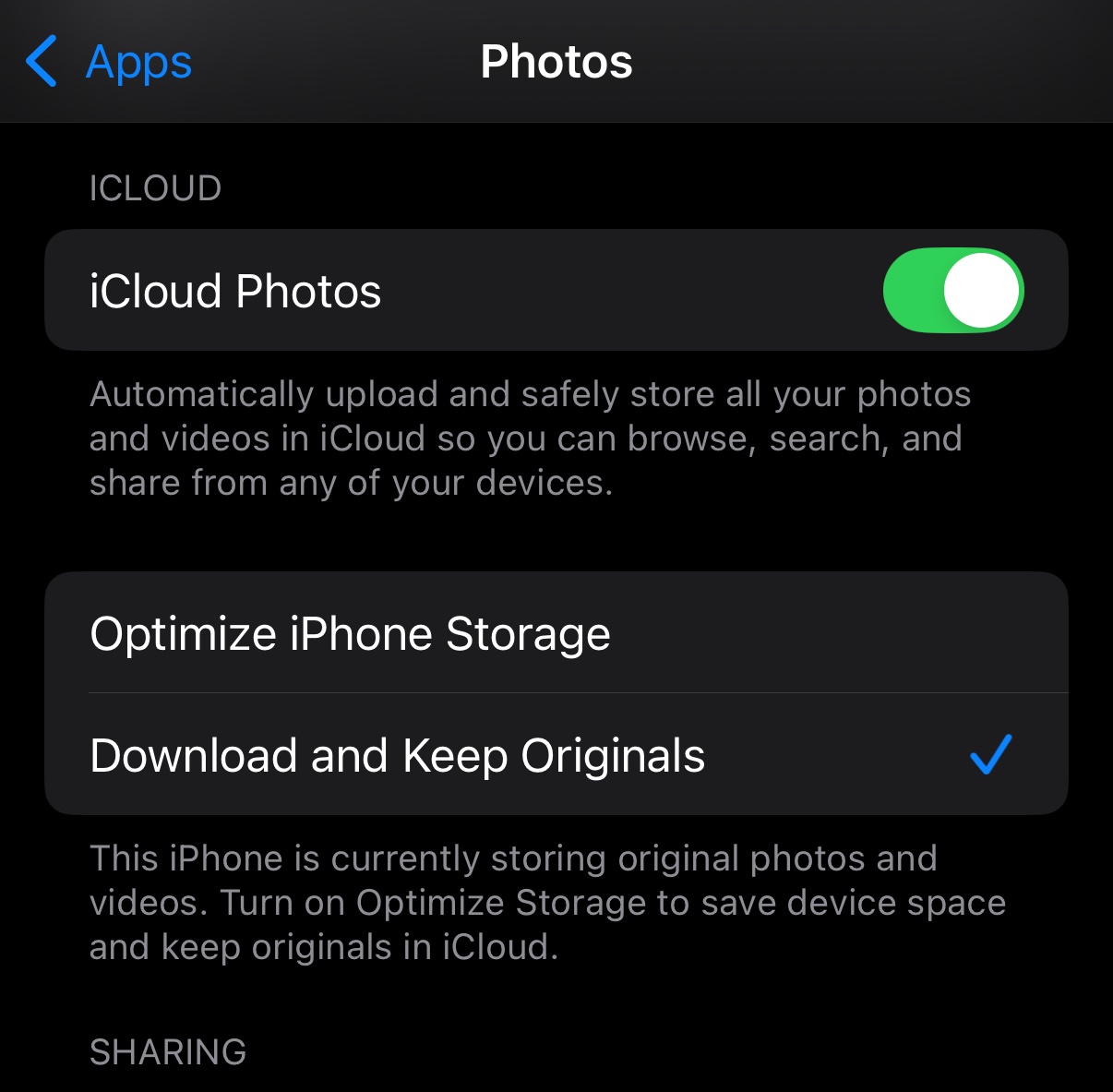 Sehe unter Einstellungen auch nicht mehr den Punkt Fotos wie früher, wo man irgendwo ein Häckchen bei "Originale behalten" wählen konnte. Gibt nur noch Kamera. Unter Kamera/Formate ist auch weiterhin "Maximale Kompatibilität" ausgewählt damit eben die Fotos in JPEG/H.264 gespeichert werden.