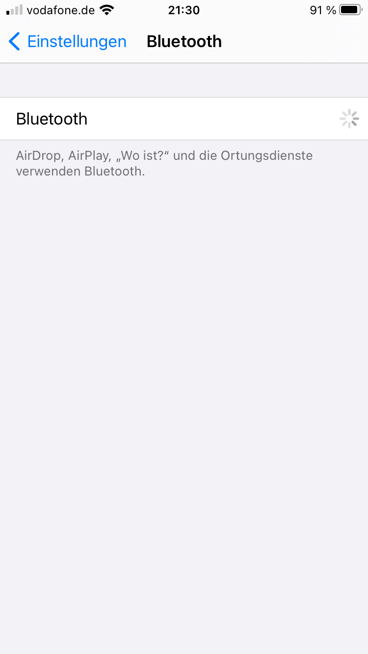 also wenn ich das Handy neustarte dann kann ich im Kontrollcenter Bluetooth aktivieren. Aber nicht mehr deaktivieren. Wenn ich es aktivieren komme ich aber in den Einstellungen nicht ins Bluetooth sondern da dreht sich immer der Kreis.