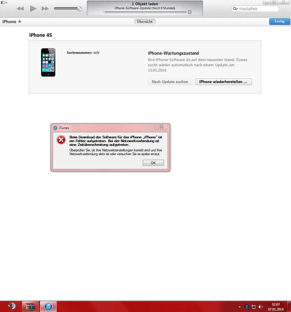 danach wollte ich das iphone am pc mit iTunes auf den werkszustand wiederherstellen, doch wenn ich die software-Daten runterlade kommt eine Fehlermeldung, dass es einen netzwerkfehler gibt ---> ich kein Internet habe (hab gehört, dass eine andere Meldung kommt, wenn die Server down sind), aber ich habe Internet, was ich daran sehe, dass ich diesen thread schreibe und im Hintergrund noch Videos gucke, ohne, dass diese hängen bleiben.