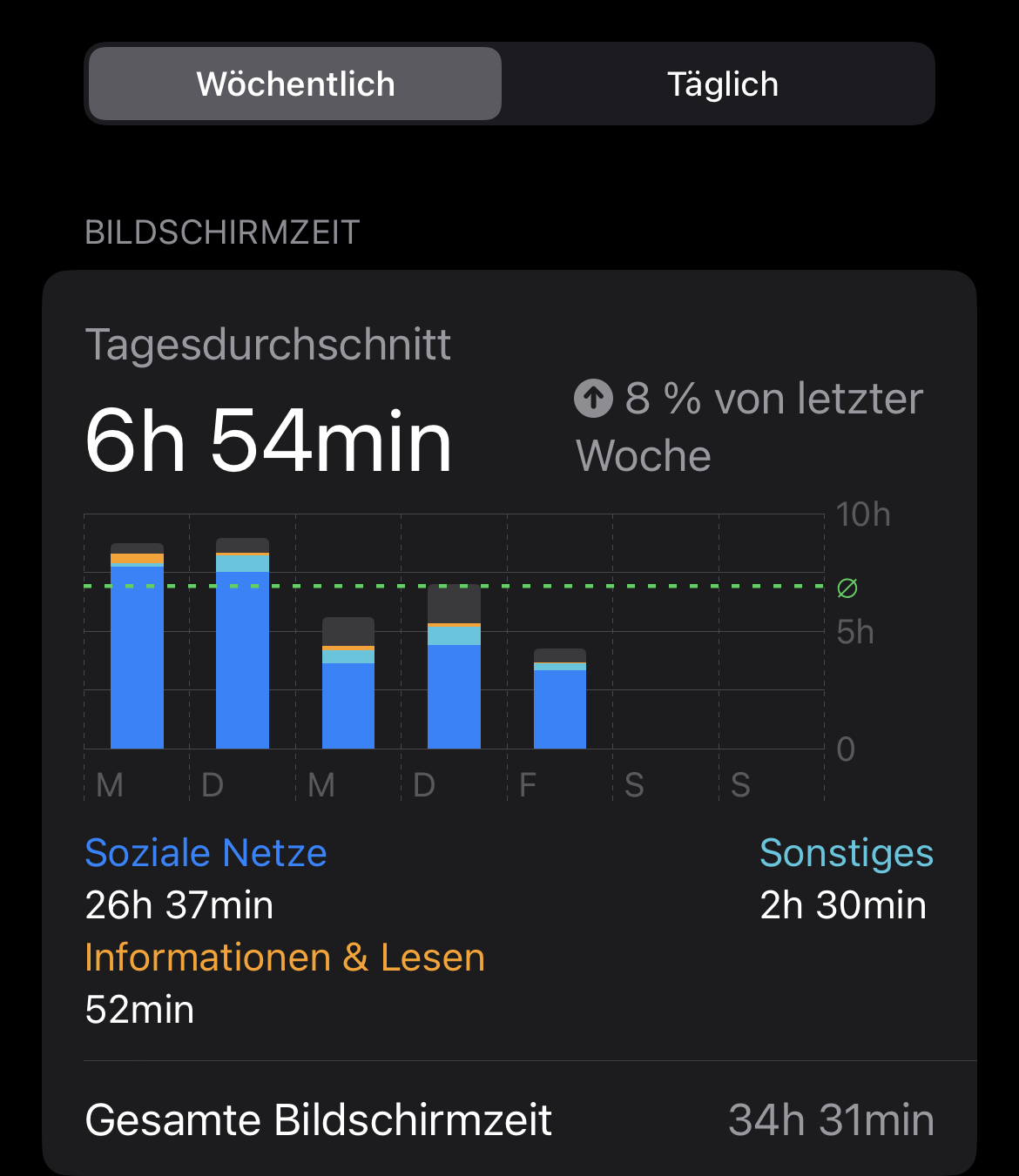 Und mein Telefon gammelt nicht nur die ganze Zeit rum, sondern wird auch benutzt.
