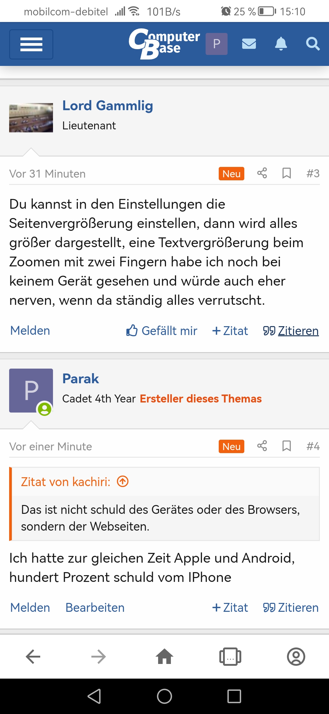 Bei Computerbase (und anderen Foren, die auf gleicher Forensoftware arbeiten, geht das aber nur so bis 125%, danach wird auch gezoomt). Auf anderen Seiten klappt die Textvergrößerung über aA besser.
