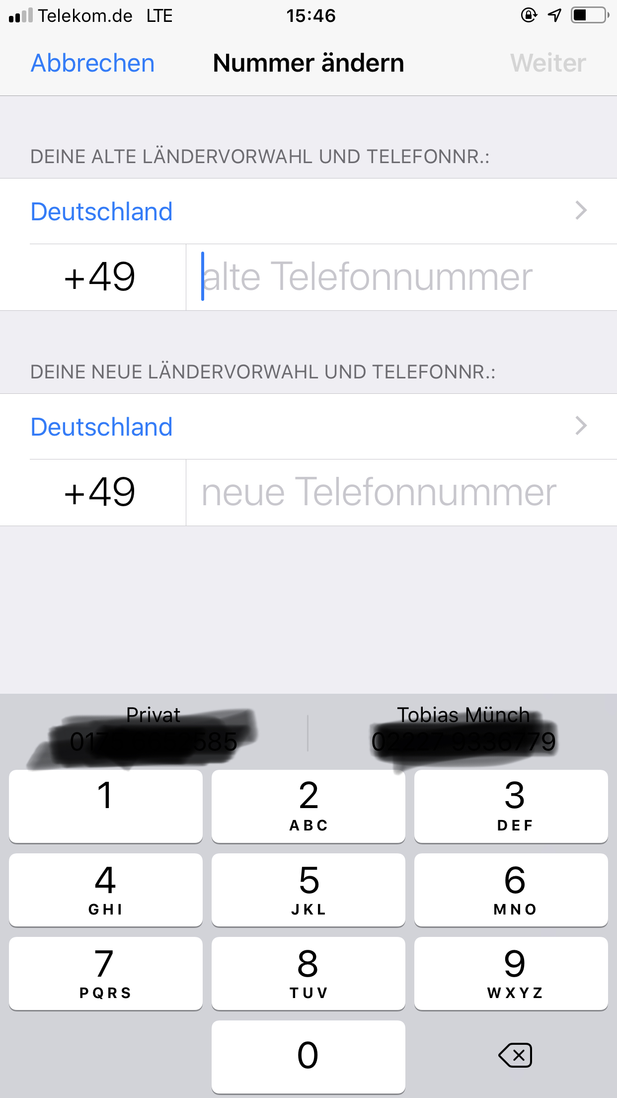 5) Wann trägt man eigentlich die neue Rufnummer bei der iCloud ein und kann man dann eine evtl. alte