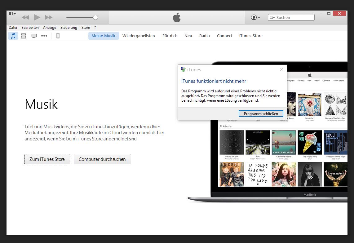 Öffne ich dazu nun Itunes stürzt dieses ebenfalls sofort ab nachdem das Telefon für ca. 2 Sek. erkannt wurde.