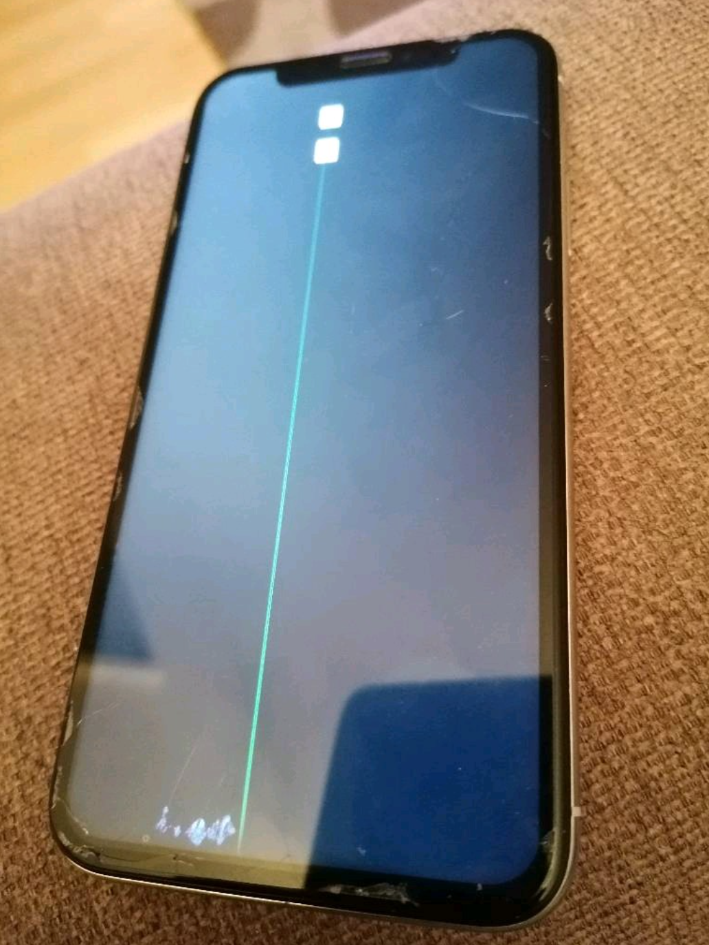 mein IPhone X ist mir gestern Runtergefallen und nun zeigt es nur noch das( Siehe Foto).