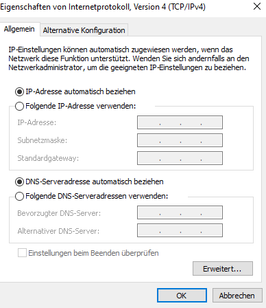 Das ist nicht passiert. Nachvollziehbar weil der Repeater kein aktives DHCP machte. Damit bekommt das Windows keine gueltige Konfig und verabschiedet sich selbst mit einer APIPA.