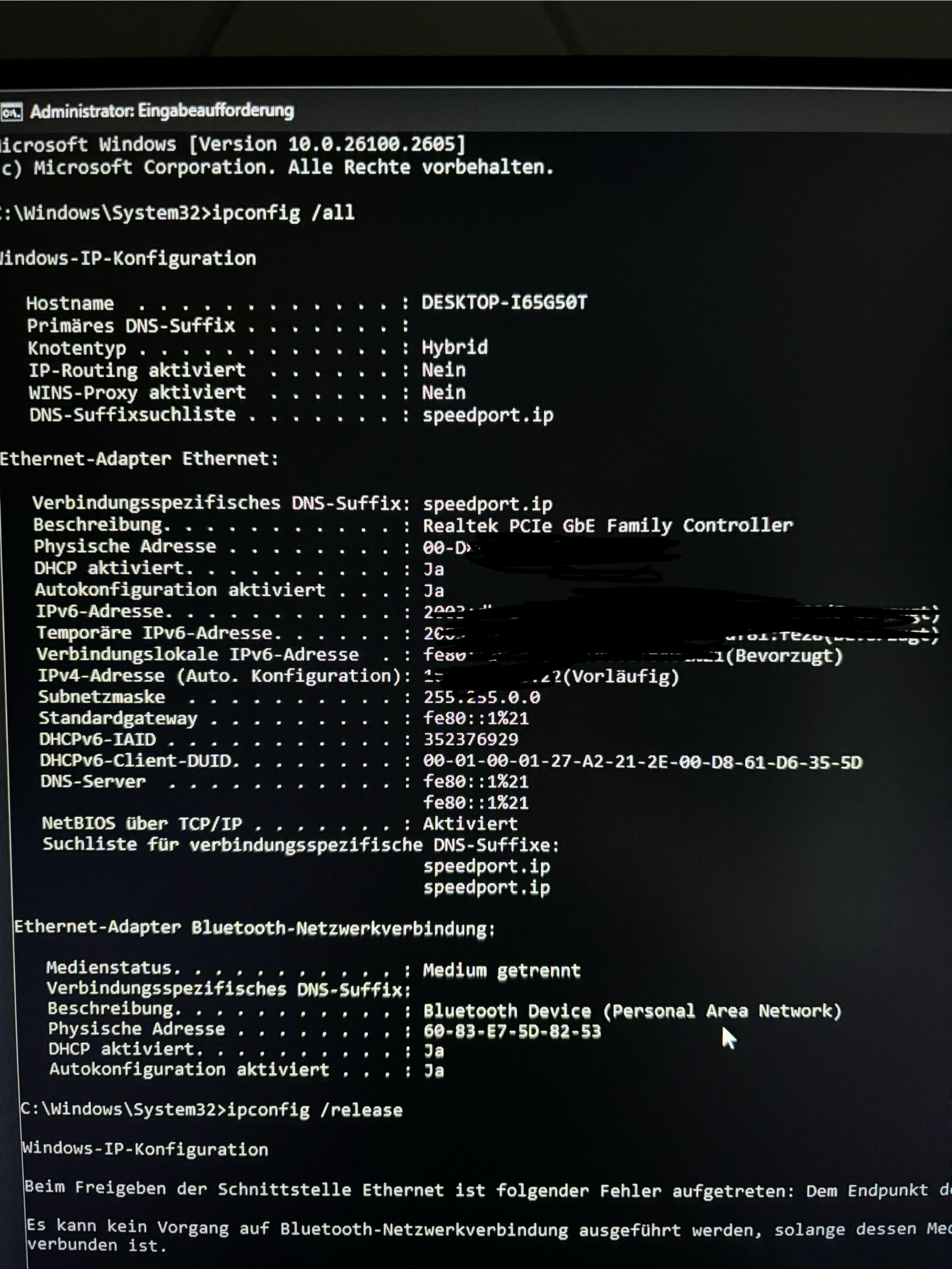 Das Problem: Ich habe an meinem PC mit LAN-Verbindung kein IPv4 mehr (warum auch immer).