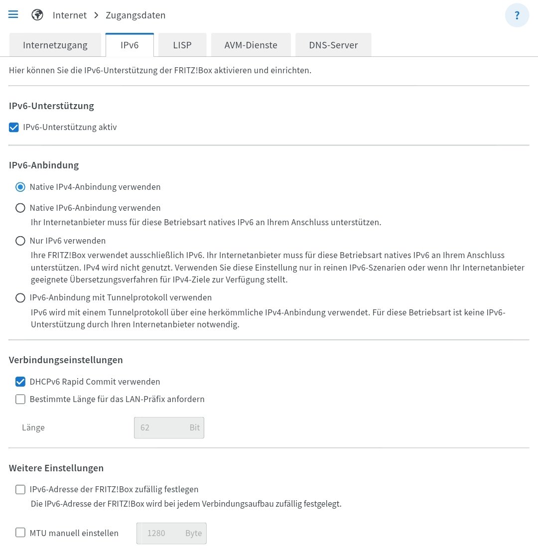 Kann mir jemand sagen, welche die empfohlene Einstellung für IPv6 bei der Deutschen Telekom ist? Ich hatte das eine zeitlang immer auf "Native IPv4 verwenden", will mich jetzt aber ein bisschen mehr mit IPv6 auseinandersetzen.