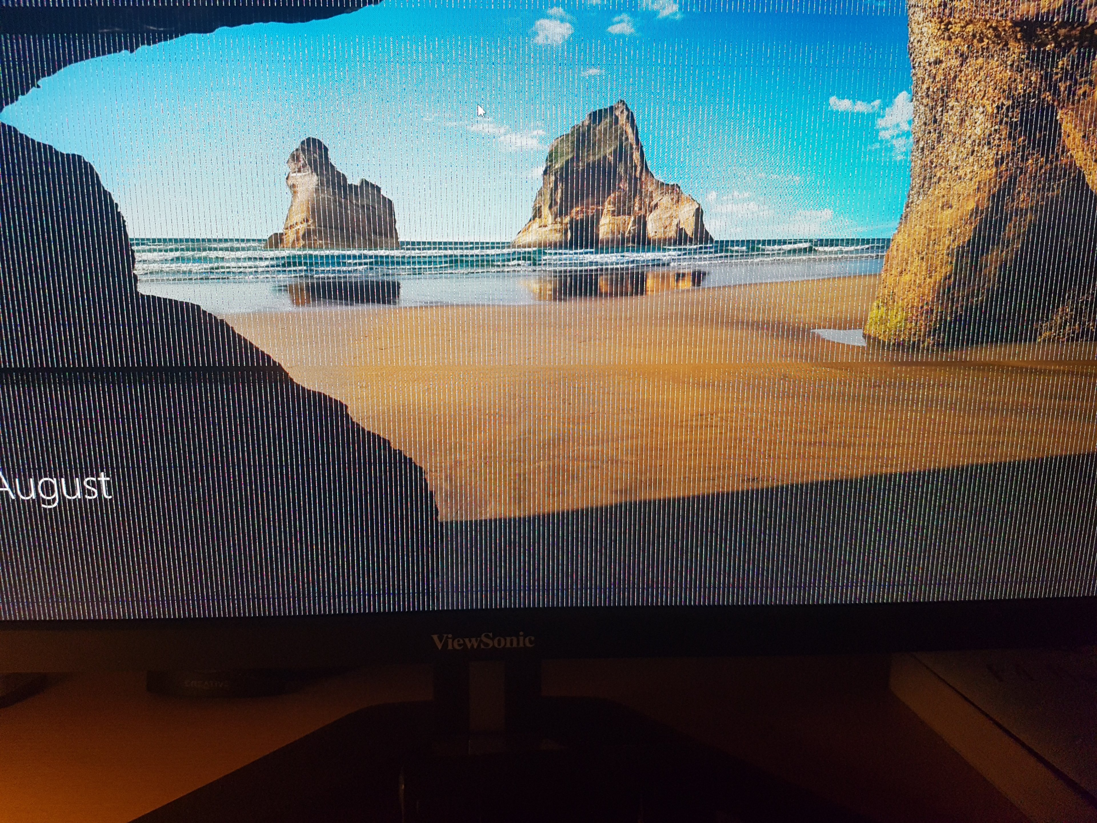 Zuerst mal hab ich den neuesten AMD-Grafikkarten-Treiber installiert - ohne Besserung. Die Grafikfehler waren so arg, dass ich überzeugt war, die Grafikkarte ist kaputt. Dann hab ich den PC nicht mehr am Display-Port-Anschluss meines Monitors angeschlossen und die Grafikfehler waren deutlich weniger und das Bild wurde nicht alle paar Sekunden schwarz, sondern bleibt so mit leichten Artefakten - so viel weniger, dass ich mich auf die Suche machen konnte. Das zweite Bild hab ich eben gemacht - jetzt läuft der PC über HDMI-Kabel und die Lüfter laufen momentan fast auf Vollgas (weil ich das so eingestellt hab). Und man sieht in der Mitte des Bildes links die gepunktete Linie die an verschiedenen Stellen immer wieder aufblitzt. Aber so kann ich zumindest den PC noch nutzen (im Gegensatz zu Bild 1, als der PC noch über Display-Port-Kabel angeschlossen war)
