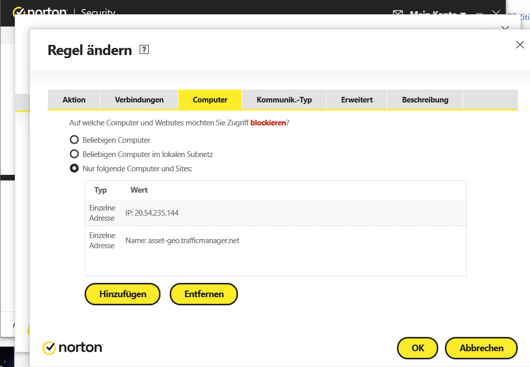 danke, habe ich versucht. Eingehend wie ausgehend und es wird trotzdem der Upload vollzogen. Werde mich jetzt nicht mehr darum kümmern und nicht weiter ärgern. Euch noch einen schönen Sonnentag.PC295 schrieb:Du kannst auch in der Windows-Firewall IP-Adressen blockieren.
