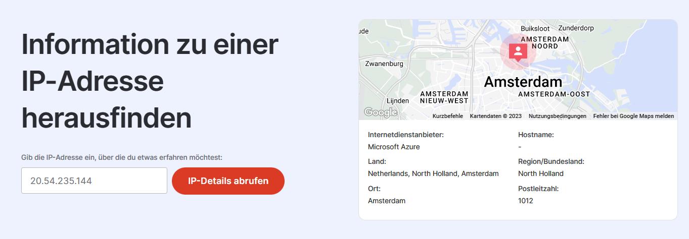 Standortinformationen zur IP-Adresse für 20.54.235.144