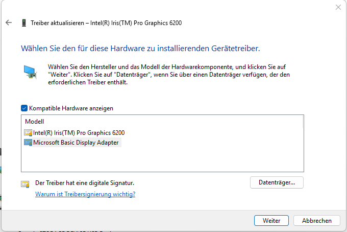 Kann es sein, dass Win 11 und Iris Pro Graphics 6200 einfach nicht gehen, inkompatibel sind?