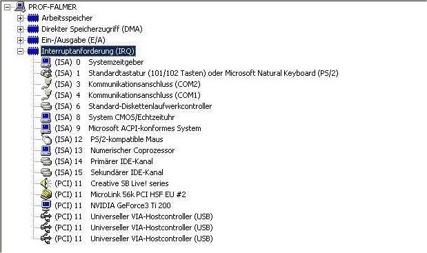 Diese Komponenten sollten besser einen exklusiven IRQ - also einen für sich alleine haben. Das ist aber mehr ein "Anhaltspunkt" - nicht zwingend die Regel.
