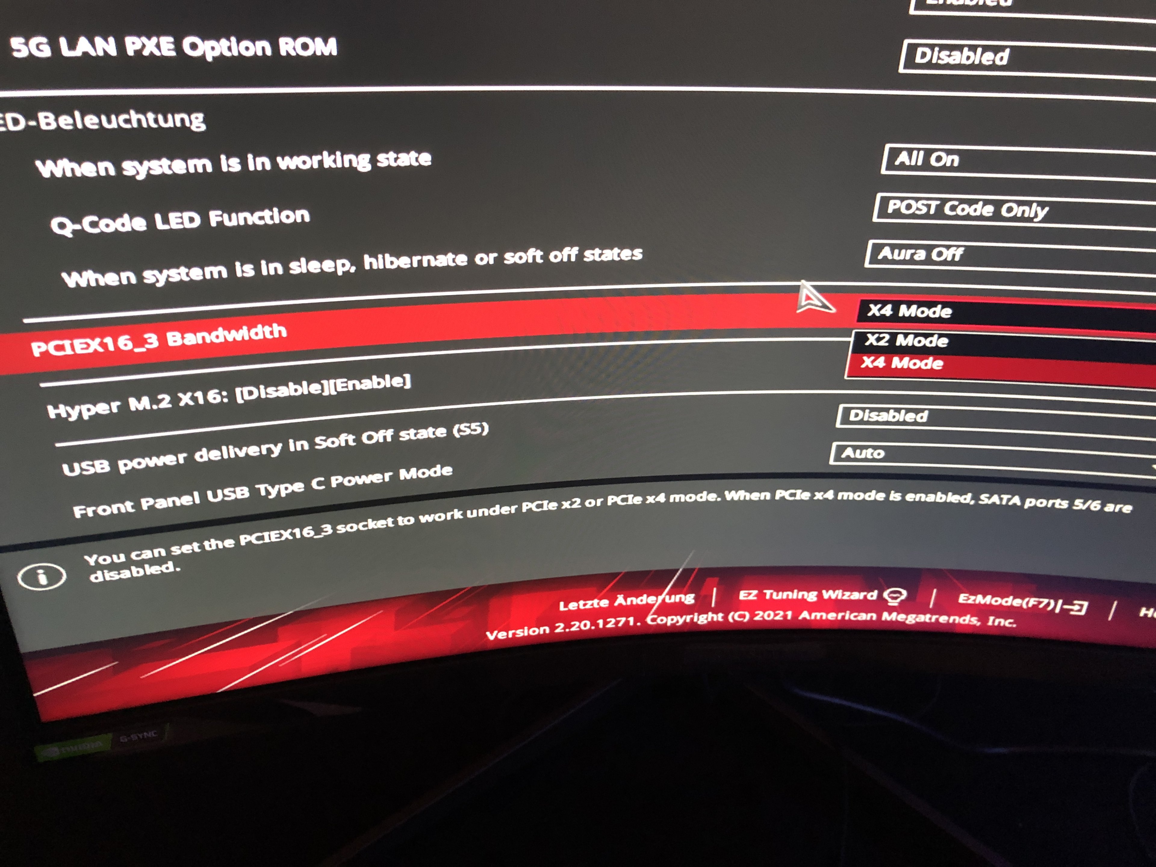 Langer Rede kurzer Sinn: PCIE x16_3 bandwidth auf x2 mode einstellen.