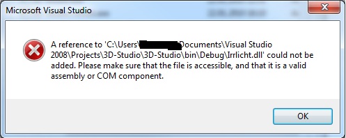 Error 1 The type or namespace name 'Irrlicht' could not be found (are you missing a using directive or an assembly reference?)