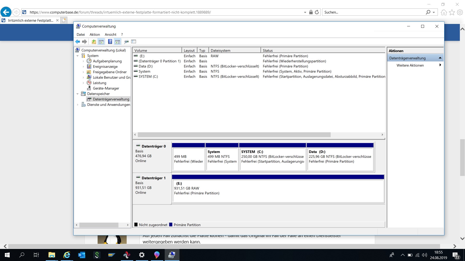 Ich hab also sofort auf abbrechen geklickt, Festplatte aus dem Lapi gezogen, neu angesteckt und bekomme jetzt folgende Meldung (siehe Screenshot):