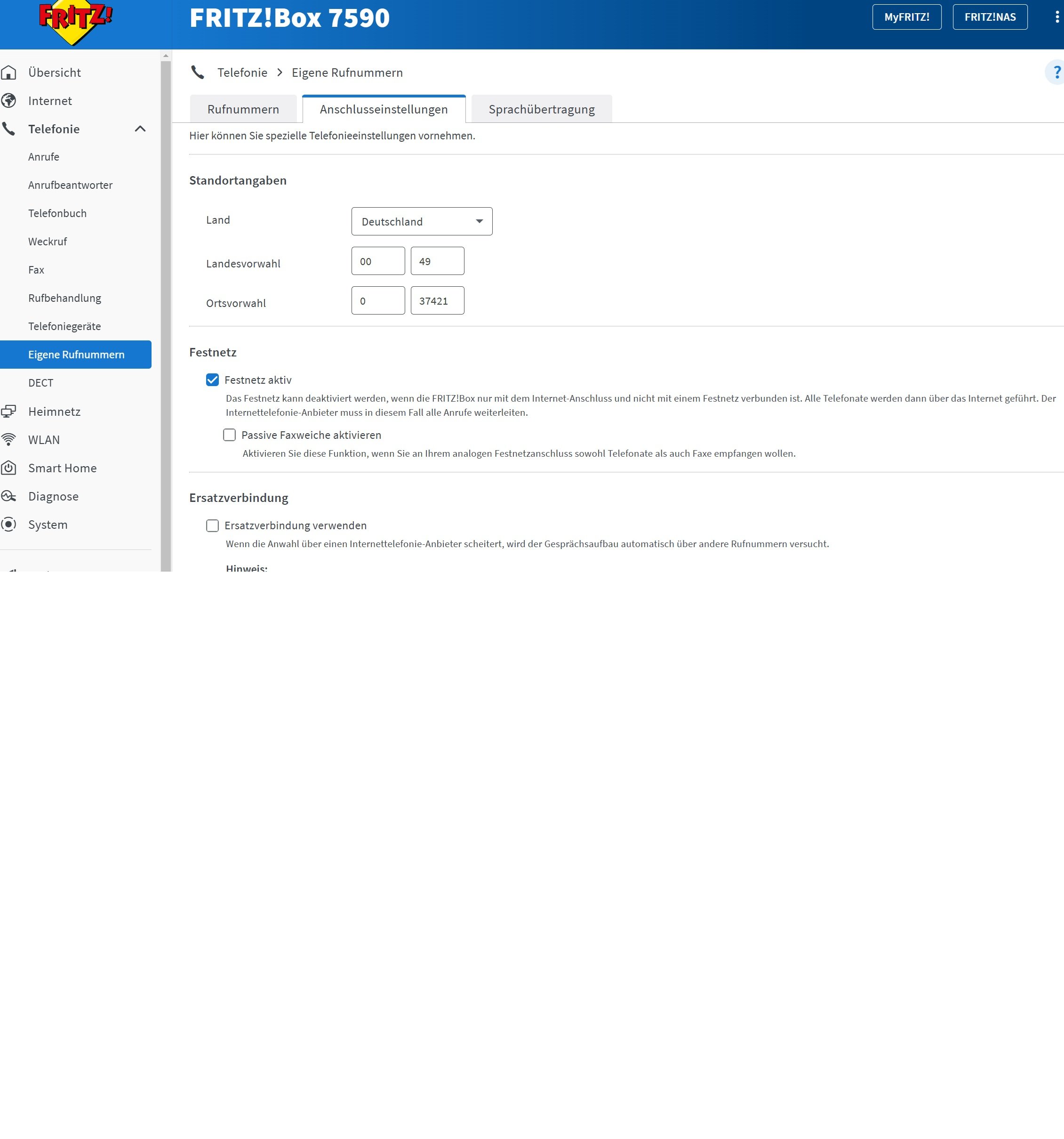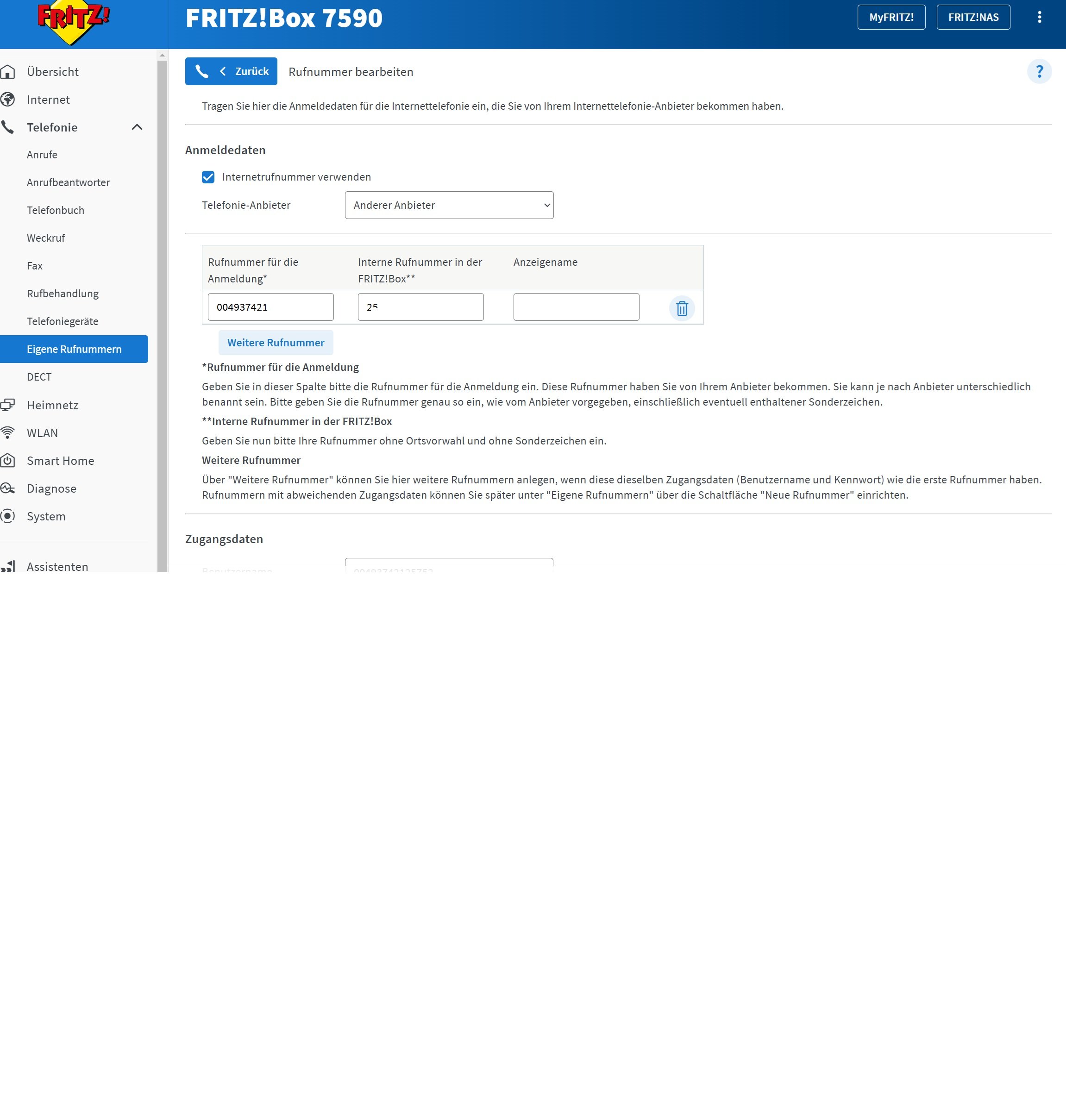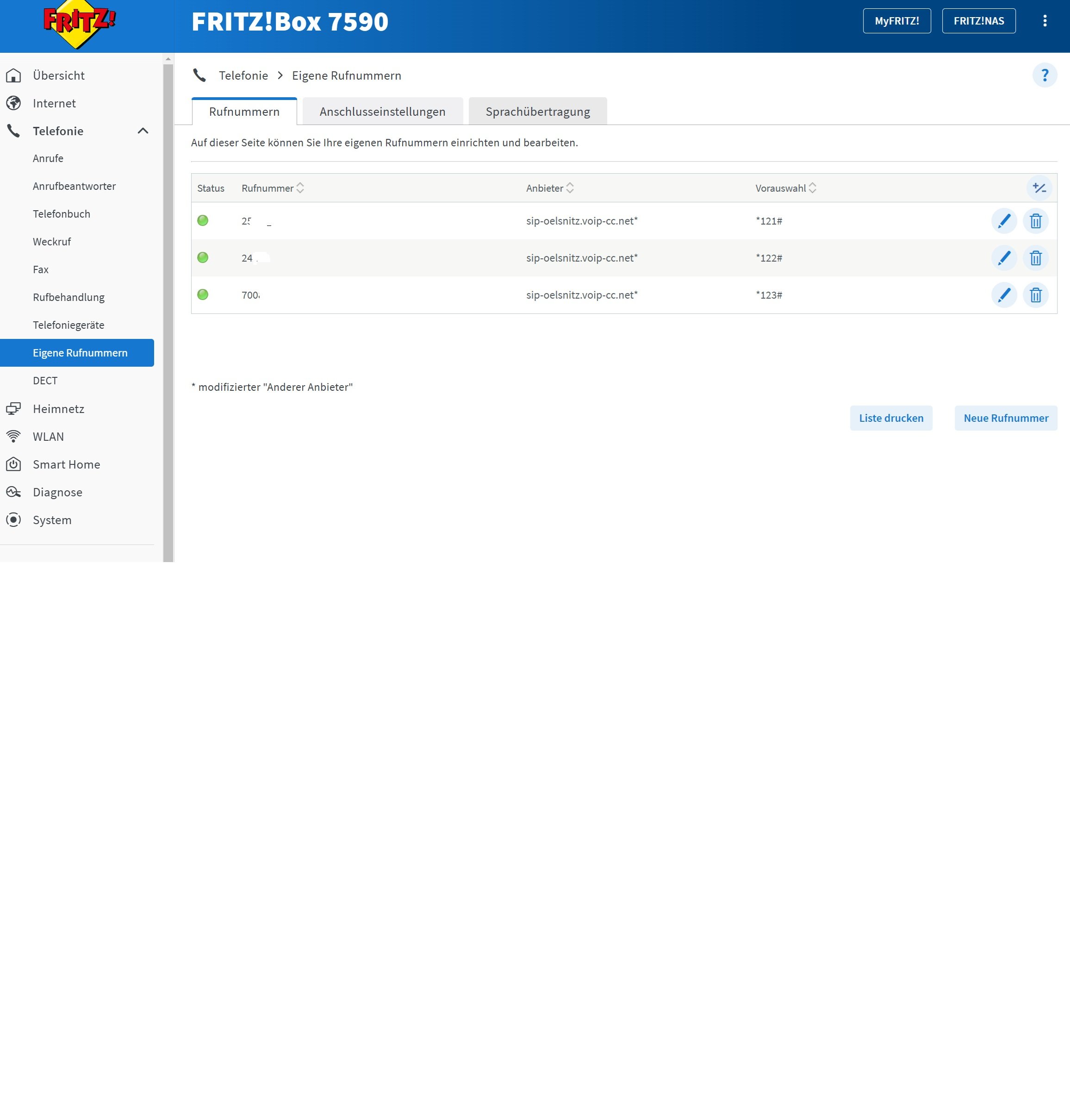 Nun die Tel-Anlage hinzufügen & Nummern vergeben.