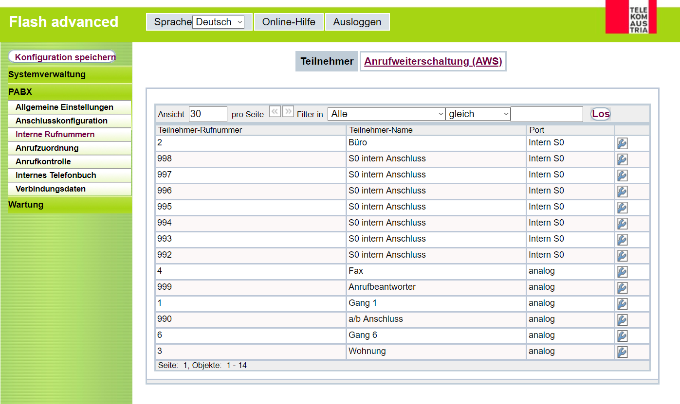Hey, habe endlich mal die Bedienungsanleitung der Telefonanlage gefunden und bin erstmal ins Web-Interface...